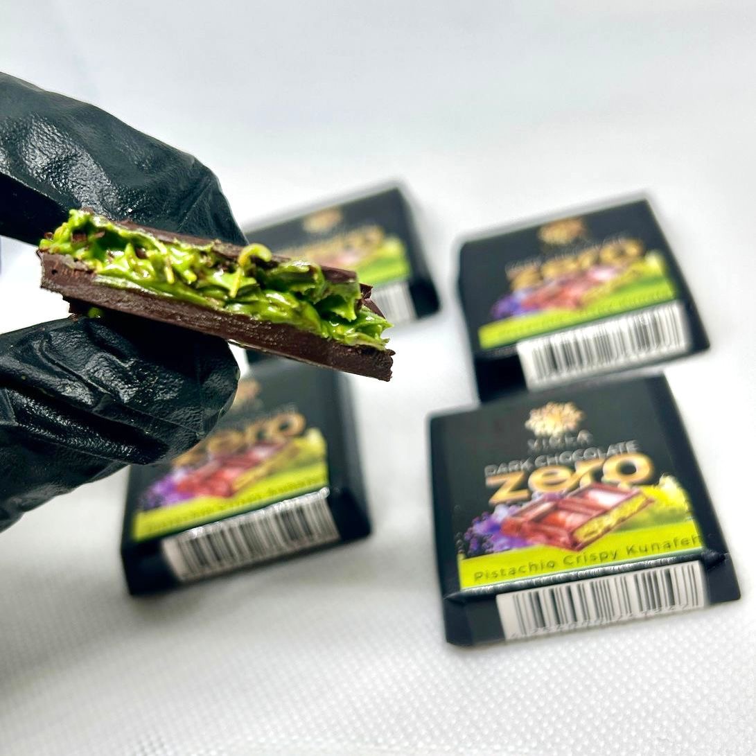 تريند دبي زيرو سكر بحشوة زبدة البستاشيو و شعر كنافة 25% فستق حلبي 60 قطعة في الباكيت